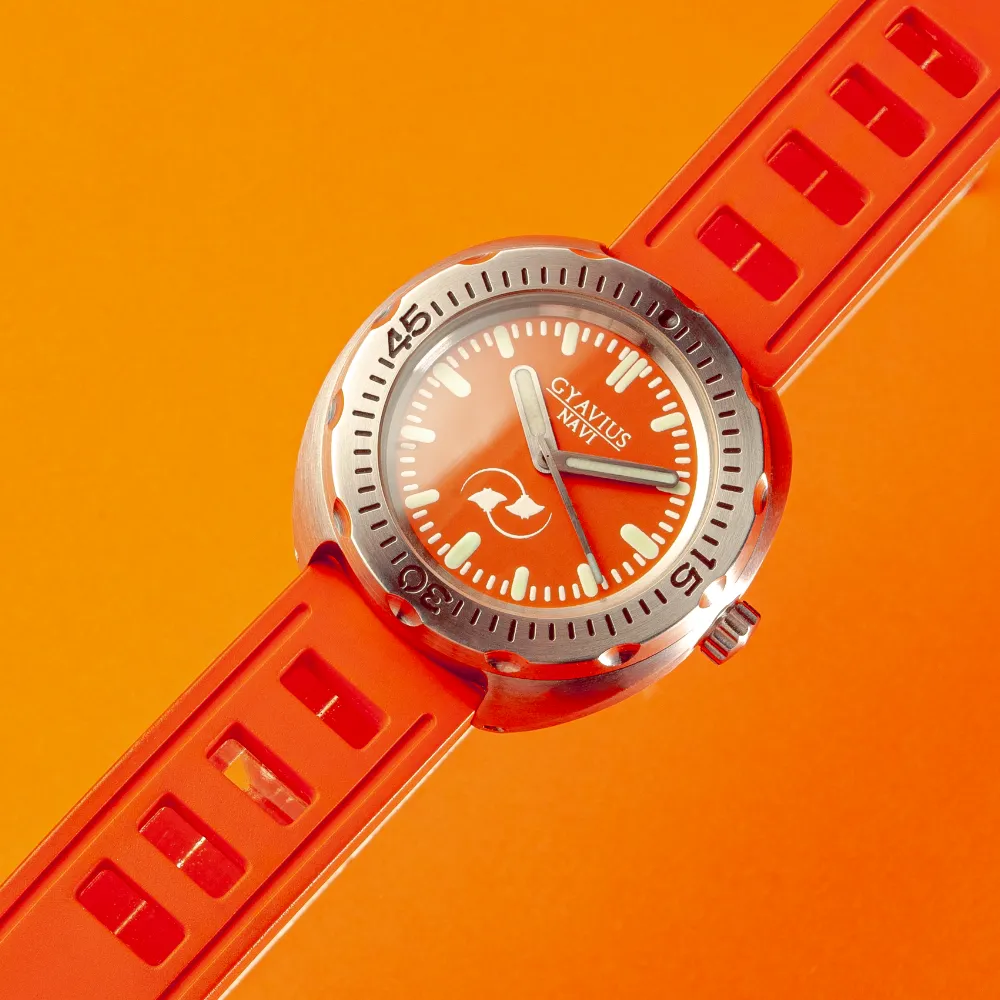 DialMatte Orange, hand printed White Superluminova, hand applied lume | Water Resistance100ATM tested |